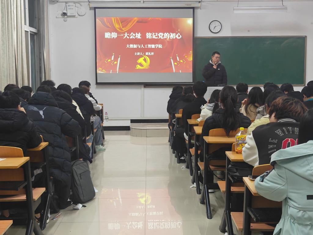 11月27日,为引导团员青年重温党的奋斗历程,深刻感悟党的初心使命,大数据与人工智能学院在人文楼112教室组织2025级新生团员及入团积极分子开展“瞻仰一大会址,铭记党的初心”主题团课活动。此次主题团课由辅导员老师黄礼祥主讲。