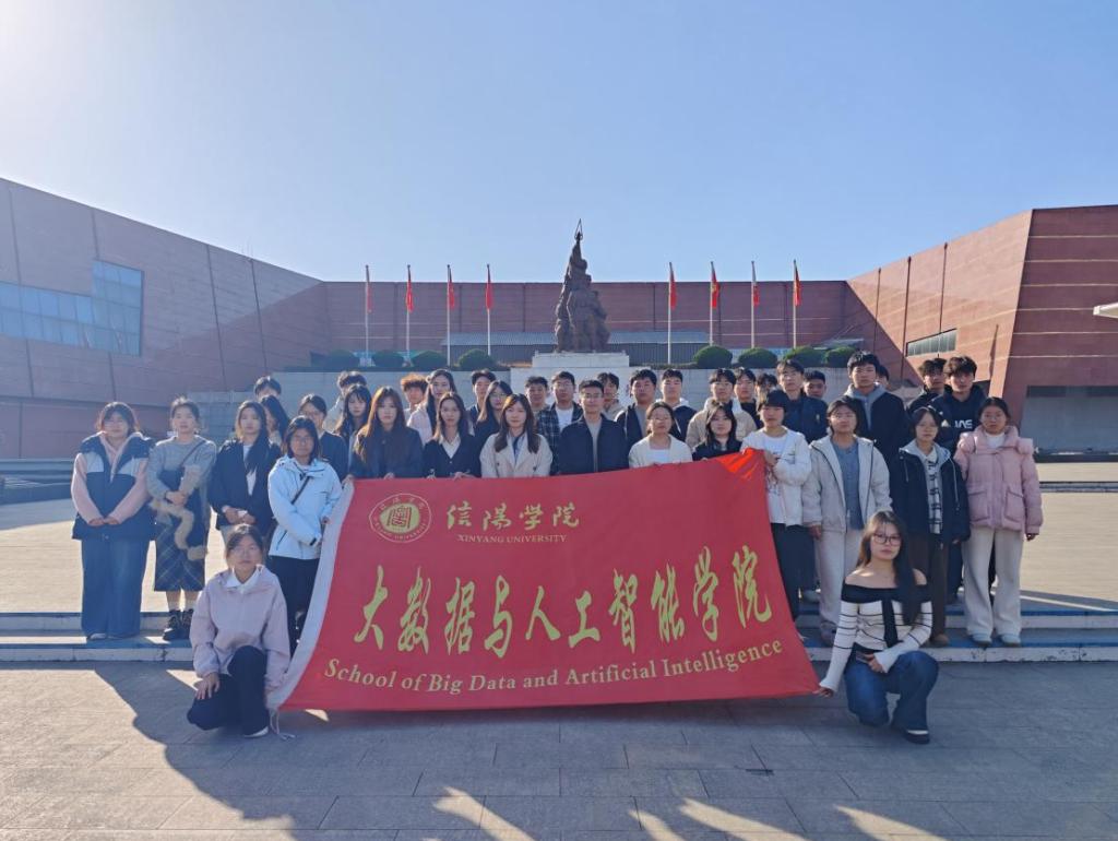 为深化新生团员的理想信念教育,厚植红色基因,引导青年学子从革命历史中汲取奋进力量。近日,大数据与人工智能学院组织25级新生团员骨干,在学院团总支书记徐瑞爽老师、辅导员李贺老师的带领下,赴信阳市鄂豫皖革命纪念馆开展新生团校实践活动。通过参观《大别御侮抗日砥柱》专题展览。让团员骨干重温大别山地区在抗日战争中的光辉历程,深刻感悟革命先辈的英勇事迹与家国情怀,筑牢共青团员的责任与担当。
