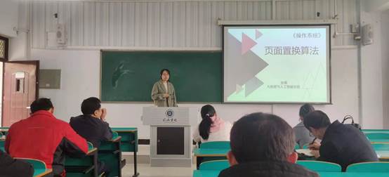 青年教师郭晶晶讲授信号与系统课程中关于信息量的内容,张雪讲授操作系统中关于页面置换算法的内容,陈致超讲授算法设计与分析中原因动态规划的内容。在讲课过程中,老师们以精彩的课堂设计、沉稳从容的讲授获得专家的肯定。专家在点评中指出每位老师在授课过程中存在的问题并给出具体的改进建议。