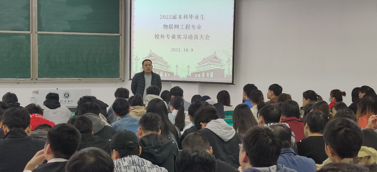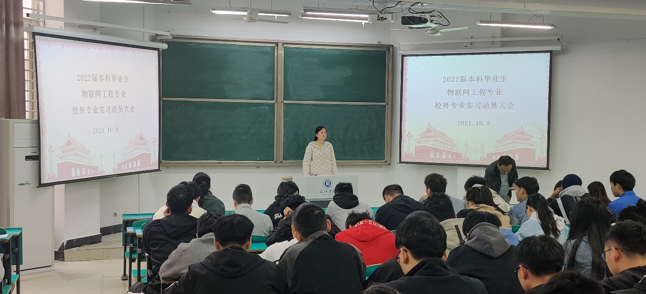 第二阶段为2022届物联网专业毕业生专业实习动员大会。学工干事鄢杰、实习指导老师陈致超老师、郭晶晶老师、辅导员王淼、物联网工程专业毕业生参加了动员会。