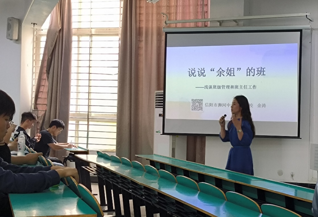 报告中,余涛老师以自己多年来班主任工作经历为同学们讲解教师应该具备的品质、如何与同学们相处、如何与家长们相处等问题,把自己管理班级的方法通过鲜活的实例展现在同学们的面前。