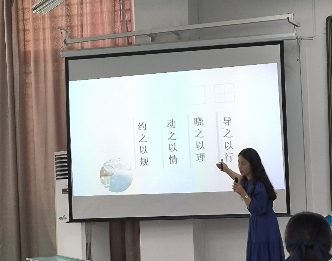余涛老师指出老师在教育过程中充当的角色是终生运动者、责任担当者、问题解决者、优雅生活者。对待学生要约之以规、动之以情、晓之以理、导之以行。作为班主任,余涛老师坚持用文化的力量打造有生命力的班级,通过各种活动和方法引导和激励学生。