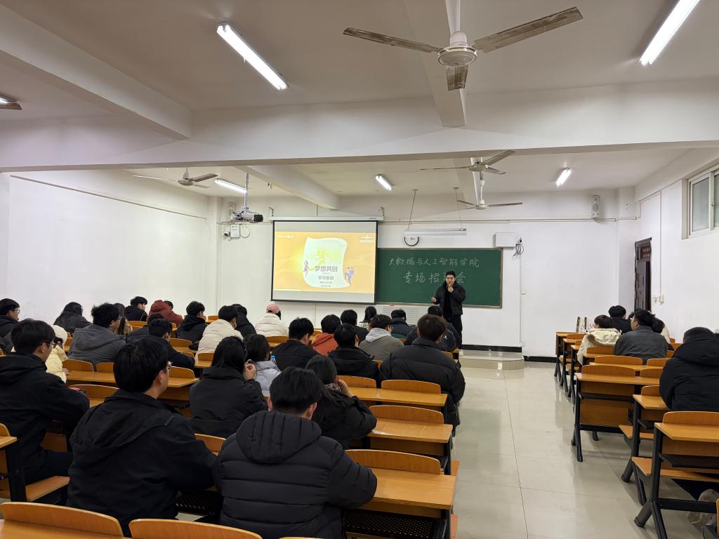 为深入贯彻学校关于毕业生就业工作的部署,切实推动2026届毕业生更充分、更高质量就业,12月10日下午,大数据与人工智能学院在人文楼311教室举行了珍岛信息(上海)技术股份有限公司第二场专场招聘会。珍岛信息(上海)技术股份有限公司全国校招总监杨涛、河南大区校招负责人姜佳淇,科大讯飞运营经理黄雨欣、辅导员杨韫幔、徐瑞爽、刘倩、黄礼祥以及2026届在校毕业生参加了本次专场招聘会。