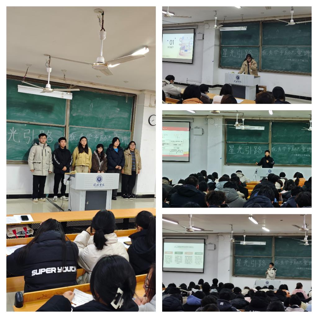 为发挥榜样示范作用,加强学风建设,引导学生树立远大志向、科学规划学业,12月23日—24日晚,大数据与人工智能学院在人文楼106教室举办优秀学子经验宣讲会。活动邀请了多位在学业科研、学科竞赛、创新创业等方面表现突出的本院优秀学子代表进行分享,吸引了各年级学生踊跃参与。