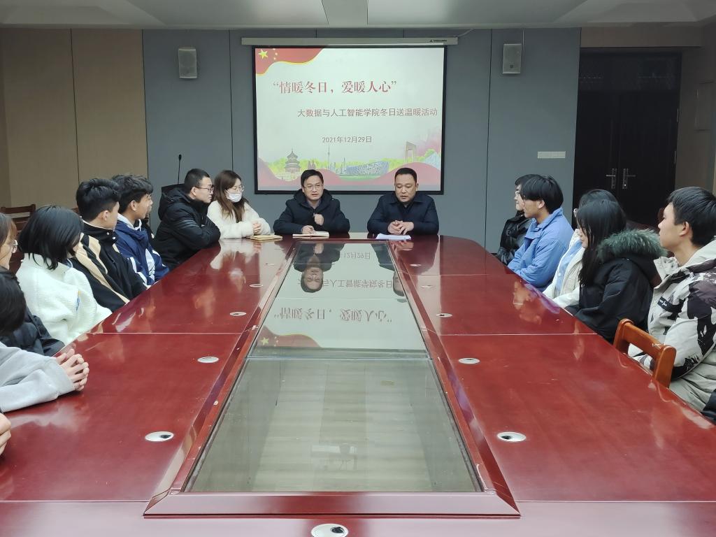 为切实贯彻落实好国家“精准资助”政策,进一步做好对家庭经济困难学生的帮扶工作,12月29日,大数据与人工智能学院在数计楼407会议室举行冬季送温暖活动。学院党总支副书记毛凤翔、学工负责人鄢杰和全体辅导员参加了慰问活动。