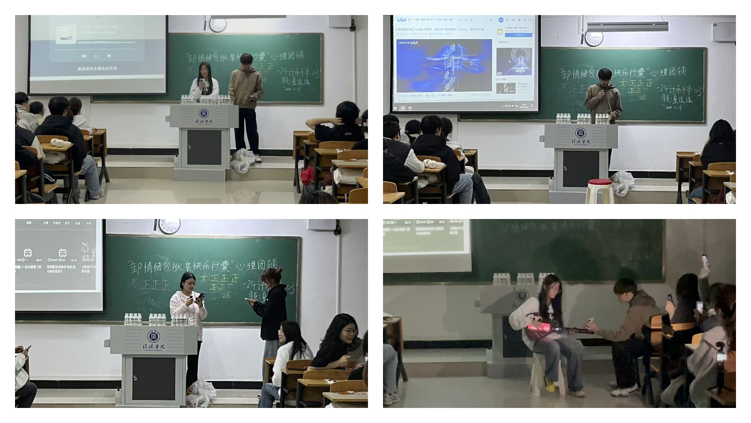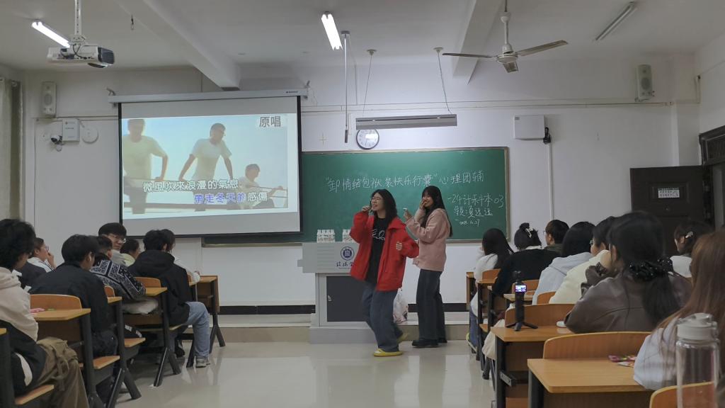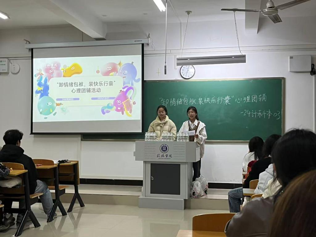 10月27日,大数据与人工智能学院24计科本03班在人文楼316教室开展了以“卸情绪包袱,装快乐行囊”为主题的心理团辅活动。活动由辅导员夏逗逗和全体班委精心组织,旨在通过一系列轻松有趣的互动环节,帮助同学们认识情绪、释放压力、发现快乐,为心灵“减负充电”。