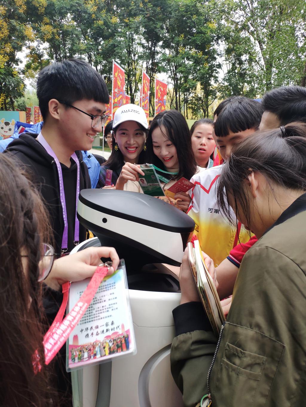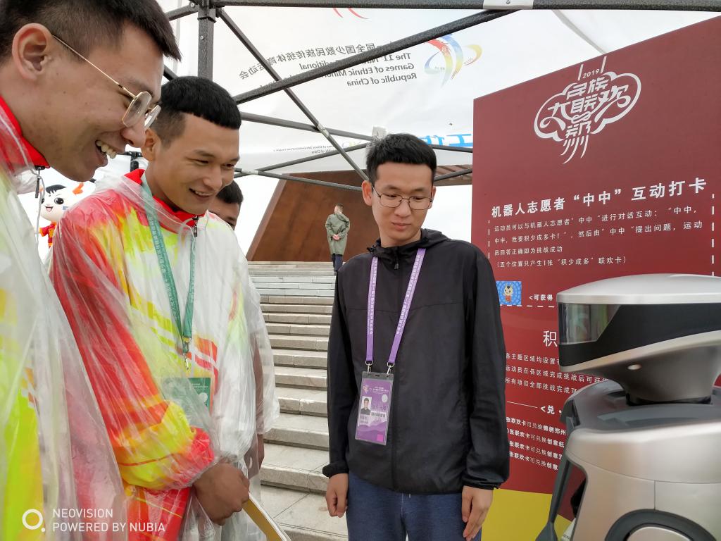 机器人志愿者“中中”在全国第十一届少数民族运动会亮相,先后与近万名与会嘉宾互动,获得了一致好评。我院应邀参与全国第十一届少数民族运动会机器人的研发,并选派2017级计算机科学技术专业学生刘俊周,2017级物联网专业学生白钰川负责运动会机器人志愿者“中中”的技术支持与现场维护。
