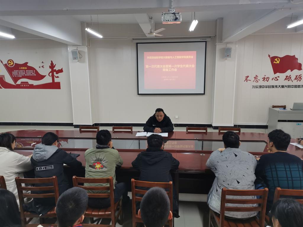 为深入贯彻落实党的十九大精神、团的十八大精神,进一步推进共青团改革和学生会改革,全面落实“从严治团”要求,按照校团委的工作部署,大数据与人工智能学院于12月3日中午,在数计楼407会议室召开了共青团信阳学院第一次代表大会暨第一次学生代表大会(以下简称“双代会”)筹备工作会。学院团总支书记鄢杰、学生会干部、各年级团支书、部分团员代表参加了会议。