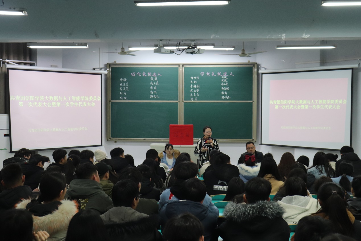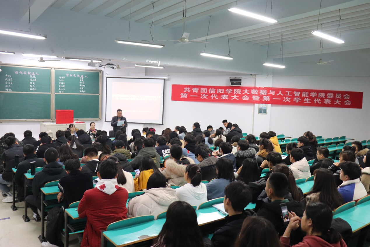 为迎接共青团信阳学院第一次代表大会暨第一次学生代表大会召开,按照校团委的统一工作部署,12月10日下午,共青团大数据与人工智能学院委员会在数计楼106教室召开了学院第一次团员代表大会暨第一次学生代表大会,选举产生参加学校第一次“双代会”的8名正式团员代表和10名正式学生代表。学院党总支书记胡秀云老师、学工干事司杰老师、团总支书记鄢杰老师出席了会议,会议由团总支书记鄢杰老师主持,学院共计90名团员代表参加了大会。