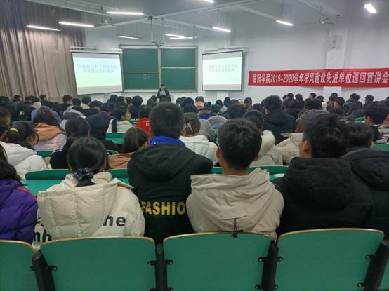 12月31日,大数据与人工智能学院2019-2020学年学风建设先进单位巡回宣讲会在数计楼206室举行,学工干事李进、各班级辅导员、和学院两百余名学生代表参加了此次宣讲会。会议由李进主持。