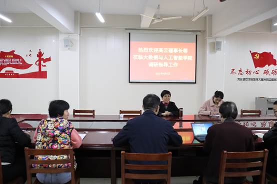 4月1日下午,理事长高云、理事会办公室袁文霞一行来大数据与人工智能学院调研指导工作。院长邬长安,党总支副书记毛凤翔,班子成员参加座谈。