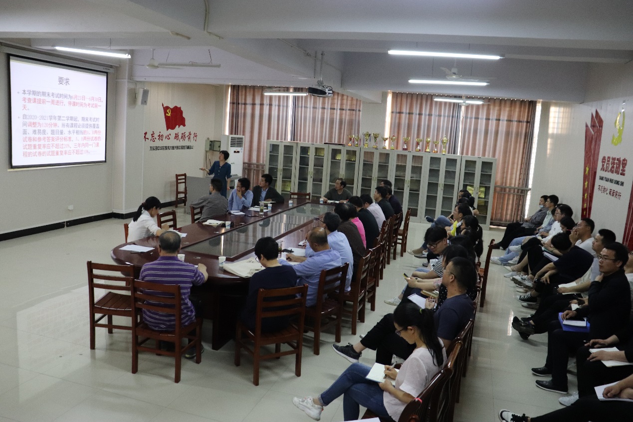 会上,司杰介绍了近期新入职的青年教师,大家分别做了自我介绍,并表示一定努力工作,为学院迎评促建贡献力量。贾彦茹就我院中期教学检查、教学大纲编写、期末考试命题等工作进行了细致的梳理。陈致超详细介绍了学生毕业论文设计的材料整理要求。毛凤翔强调评估期间各项教学材料要严格按照要求规范整理,通报了学院评估期间教师量化考核办法,并对近期学生安全教育、招生就业等学生工作进行安排。