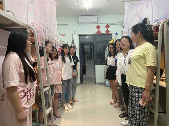 毛凤翔一行分别走访暑期留校男生和女生寝室关切询问学生学习、生活状况,再三强调学生留校安全问题。一、强调留校学生住宿安全问题。注意用水、用电安全,不要私拉电线,上下床铺要小心,严禁使用违规电器。二、严格规范留校学生外出审批程序,做到出校门请假,出远门详细报备,严禁去中高风险地区、危险地方游玩。三、谨防电信诈骗,提高警惕,不贪小便宜,遇到问题及时告知辅导员。