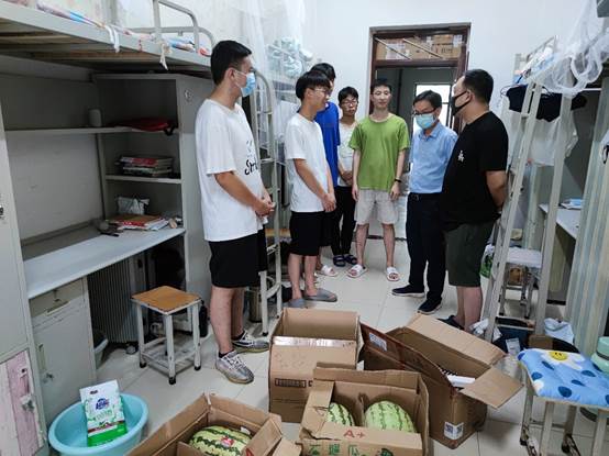 毛凤翔一行代表学院为留校学生送去了西瓜,花露水等消暑慰问品,并给考研学生送去了定制的祝考研成功的文具套装。老师们贴心的叮嘱和真诚的祝福,让留校学生深受鼓舞,倍感温暖。同学们纷纷表示在接下来的时间,会密切配合学校疫情常态化防控工作,加强自我防护,合理规划学习生活。