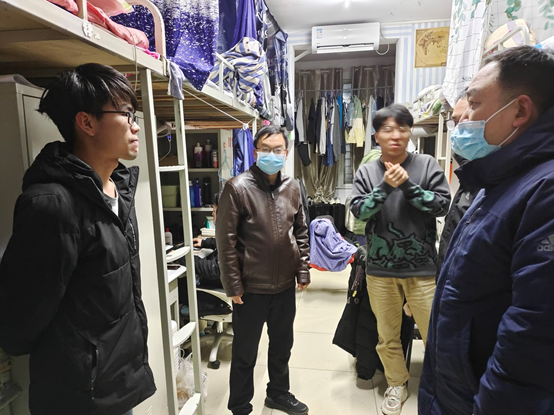 在走访过程中,毛凤翔与寝室同学进行交流,重点向学生提醒、宣传疫情防控注意事项、当前疫情防控形势和学生请销假要求等。毛凤翔强调,面对当前严峻复杂的疫情防控形势,全体学生要增强防控意识,坚定抗疫必胜信心,自觉服从学校防控要求,要适应好线上线下相结合的学习模式,真正发挥好寝室的学习功能。