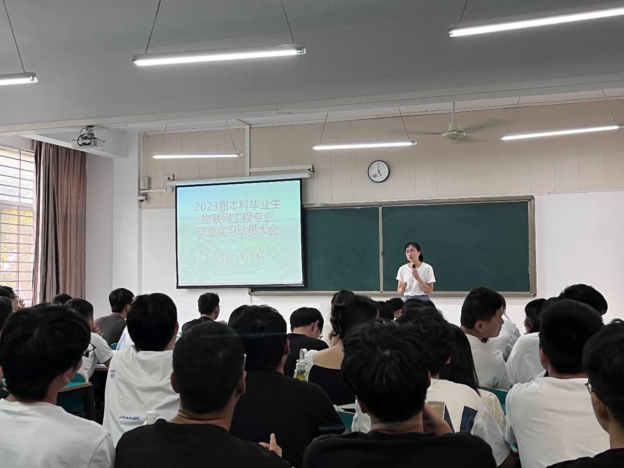 为保证学生实习工作顺利开展,落实应用型人才培养的要求9月14日下午,大数据与人工智能学院在数计楼102召开2023届物联网工程专业毕业生实习动员大会。物联网工程教研室负责人郭晶晶老师、辅导员代亚南老师及19级物联网工程专业全体学生参加此次会议。