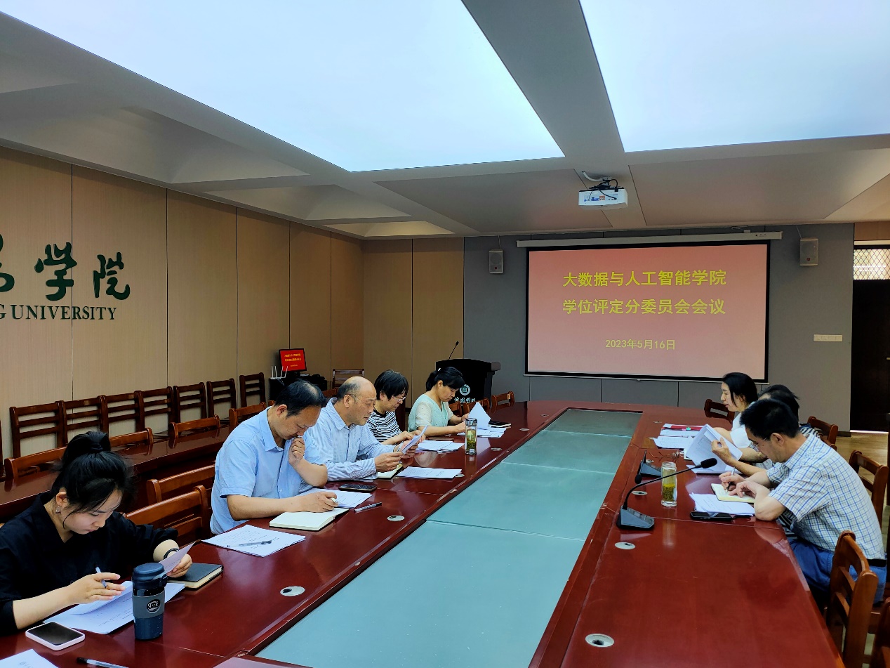 2023年5月16日上午,大数据与人工智能学院在数计楼407召开了学位评定分委员会会议,会议审定了2023届毕业生学士学位授予情况。本次会议由学位评定委员贾彦茹主持,主席邬长安、副主席黄俊、委员侯秀红、陈玉科、马学文、倪天伟、毛凤翔、师春灵全部出席,学工负责人鄢杰、毕业班辅导员代亚南列席出席会议。