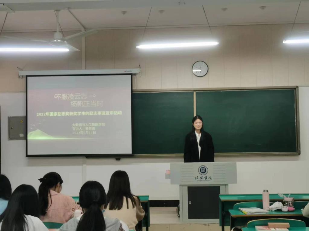 为深入学习贯彻党的二十大精神,宣传好资助政策,讲好资助故事,发挥榜样引领作用,引导全院学生树立励志成才、知恩感恩的意识。5月19日,大数据与人工智能学院在数计楼103教室开展2022年度国家励志奖学金获奖学生励志事迹分享会,学院学工干事鄢杰、全体辅导员、国家励志奖学金获得者代表和各年级学生代表参加了此次分享会。