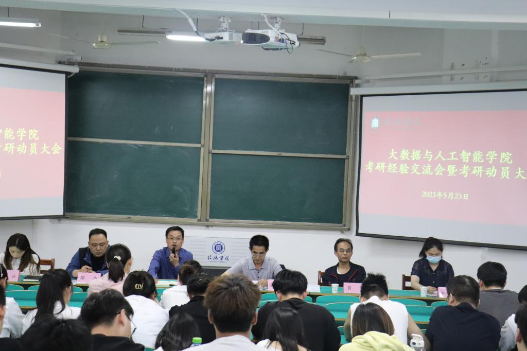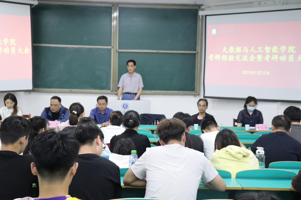 为进一步提升学院人才培养质量,充分调动学生考研积极性,帮助学生认清当前考研新形势,树立考研自信心,扎实推进本科生考研指导工作。5月23日下午,大数据与人工智能学院在数计楼105教室召开2023年考研经验交流会暨考研动员大会。学院院长邬长安、党总支副书记毛凤翔、教学副院长黄俊、学工干事鄢杰、带班辅导员李书林、赵冉、2023年考取研究生学生代表和2020级全体学生参加了此次大会。会议由鄢杰主持。