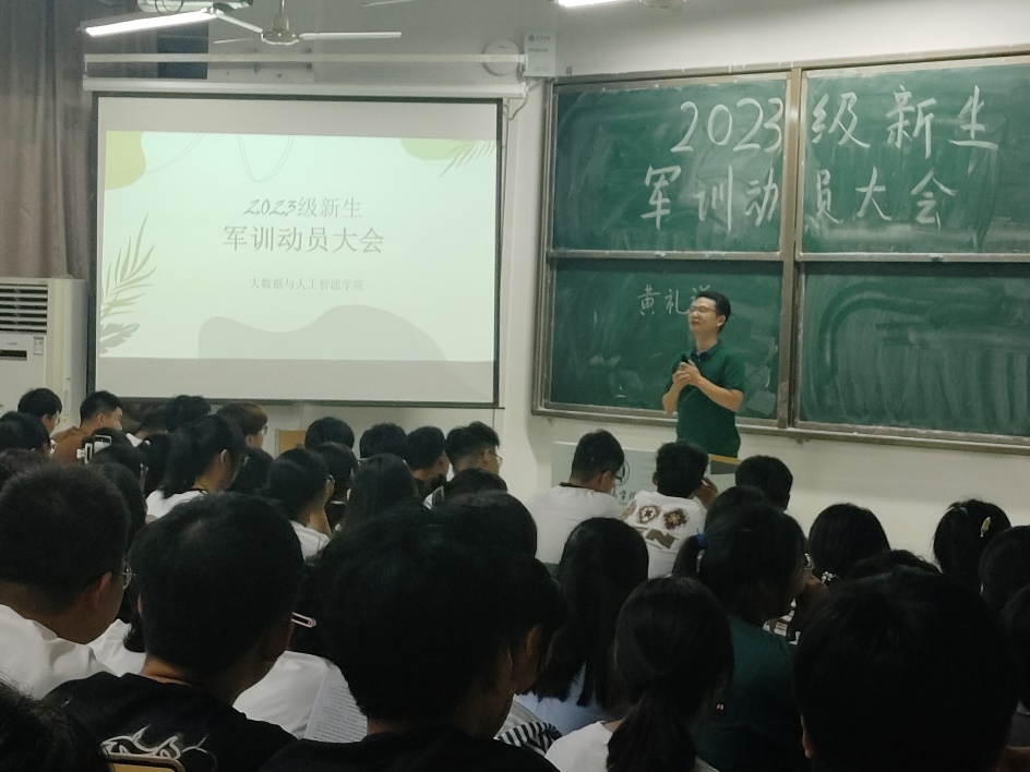 为增强学生国防观念、国家安全意识和忧患危机意识,提高学生综合国防素质,2023年9月7日晚,大数据与人工智能学院2023级新生军训动员暨国防教育主题班会在数计楼105、409、502、503教室召开。本次主题班会由新生辅导员黄礼祥、刘明珠分会场主持,2023级全体参训新生参加了会议。