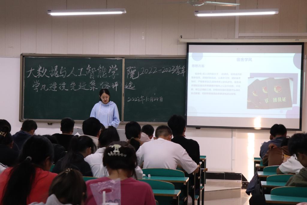 为加强学院学风建设,营造积极向上、创先争优的浓郁学习风气与良好的环境氛围。根据《信阳学院关于评选2022~2023学年学风建设先进集体的通知》(校学字〔2023〕35号)文件要求,10月24日下午,大数据与人工智能学院在数计楼109教室开展2022-2023年度学风建设先进班集体和先进宿舍评选活动。全体辅导员出席此次活动并担任评委。