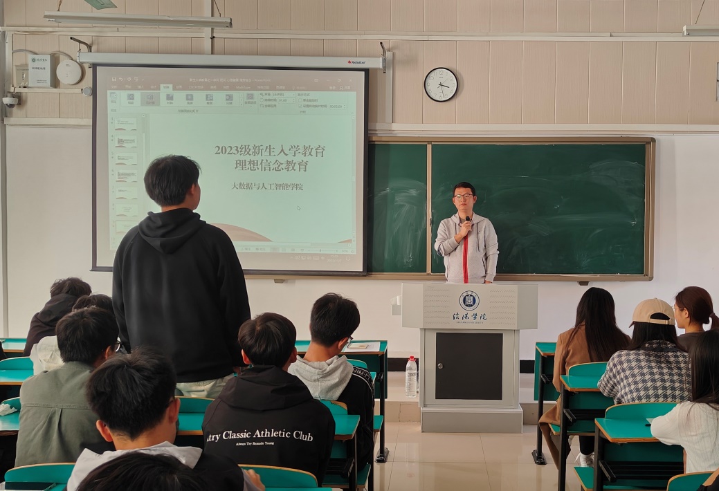 为深入开展学习贯彻习近平新时代中国特色社会主义思想,教育引导2023级全体学生树立崇高理想信念,10月9日至12日,大数据与人工智能学院开展了理想信念教育主题班会,班会分别由2023级辅导员老师刘明珠、黄礼祥和晏祥主讲,2023级全体学生参加。