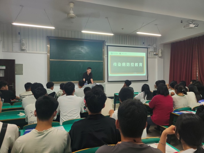 各位辅导员老师通过讲解传染病是什么、传染病有哪些、传染病的传播途径、如何预防传染病等多个内容,并结合社会上比较流行的支原体等传染病案例,给各位新生上了生动具体的一课。同时,各位辅导员通过一些生活细节,提醒大家注意预防传染病。如宿舍、教室要及时开窗通风,天气变化注意增减衣物等。