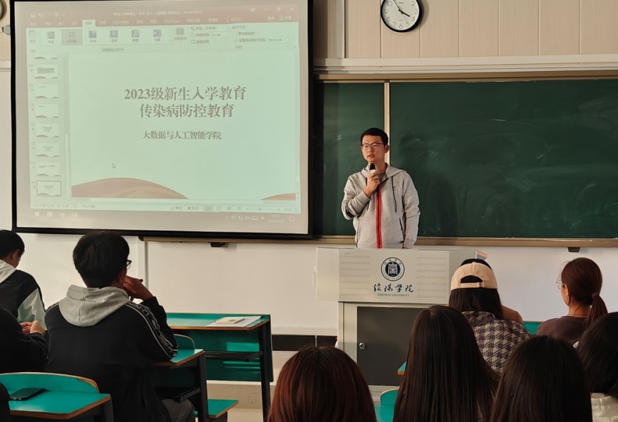 秋冬季是呼吸道传染病和肠道传染病的高发季节,为提升2023级新生传染病防控相关知识,切实保障全体新生的身体健康,10月11日至13日,大数据与人工智能学院开展了传染病防控教育主题班会,班会分别由2023级辅导员老师刘明珠、黄礼祥和晏祥主讲,2023级全体学生参加。