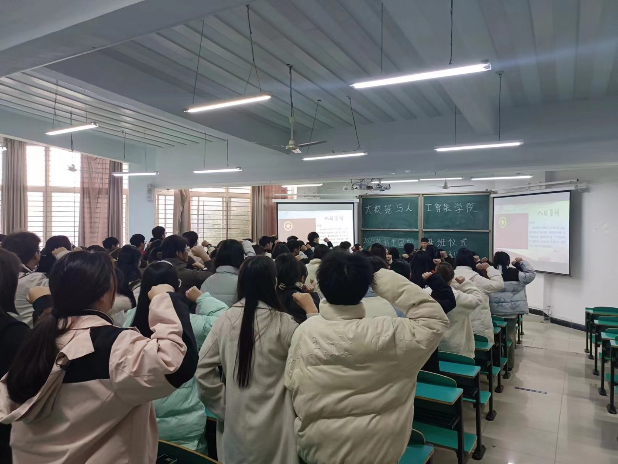 为了进一步提高广大青年团员的道德素养,不断提升团员的实践能力和综合素质。12月1日下午,大数据与人工智能学院在数计楼106教室举行2023级新生团校开班仪式暨新生团校第一课。参加此次开班仪式的有学院党总支副书记毛凤翔、团总支书记晏祥、23级辅导员黄礼祥、刘明珠、团总支副书记宋相祎及2023级全体团员。