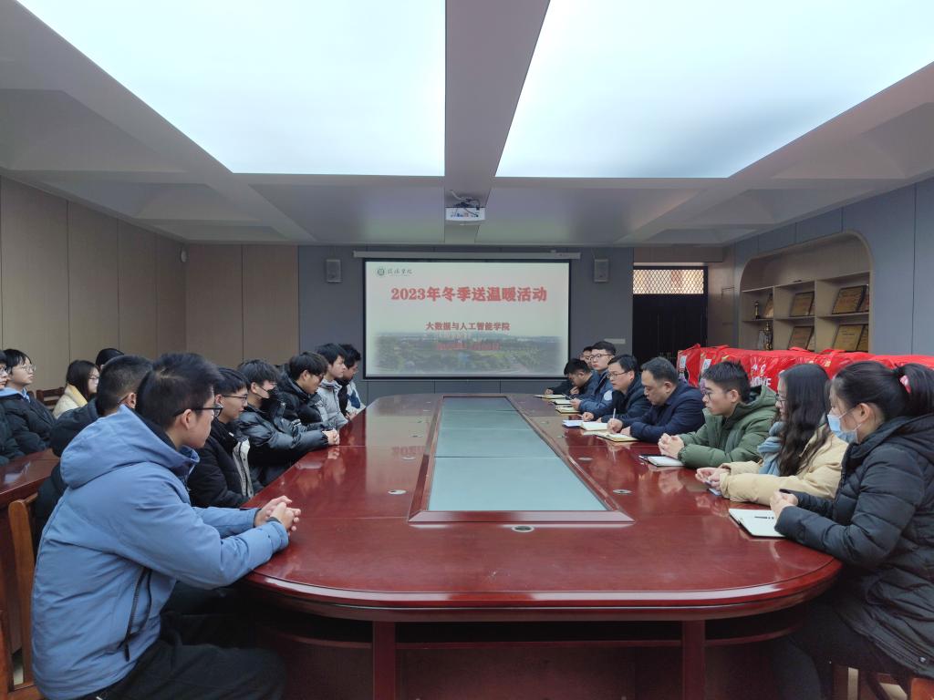 为贯彻落实国家学生资助政策,保障家庭经济困难的学生温暖过冬,12月26日中午,大数据与人工智能学院在数计楼407会议室开展2023年冬季送温暖活动,学院党总支副书记毛凤翔、学工干事鄢杰、全体辅导员和受助学生参加了此次活动。