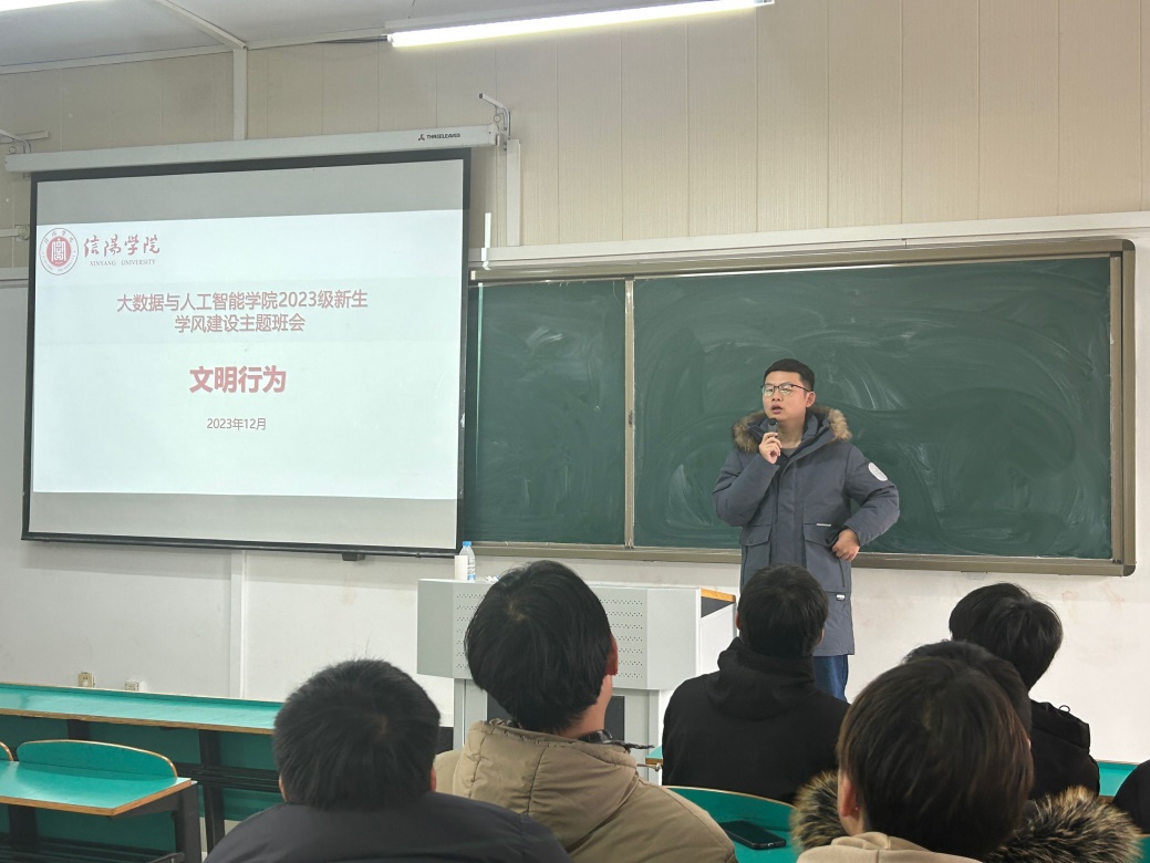 为弘扬时代新风,提高学生文明素养,规范新生的行为举止,11月27日-29日,大数据与人工智能学院组织2023级新生召开文明行为教育主题班会。通过树立文明意识,教育文明行为,养成文明习惯等,让文明成为学生一种自觉的行为、一种良好的习惯和一种精神追求。本次主题班会由新生辅导员黄礼祥、刘明珠和晏祥主持,2023级全体新生参加。