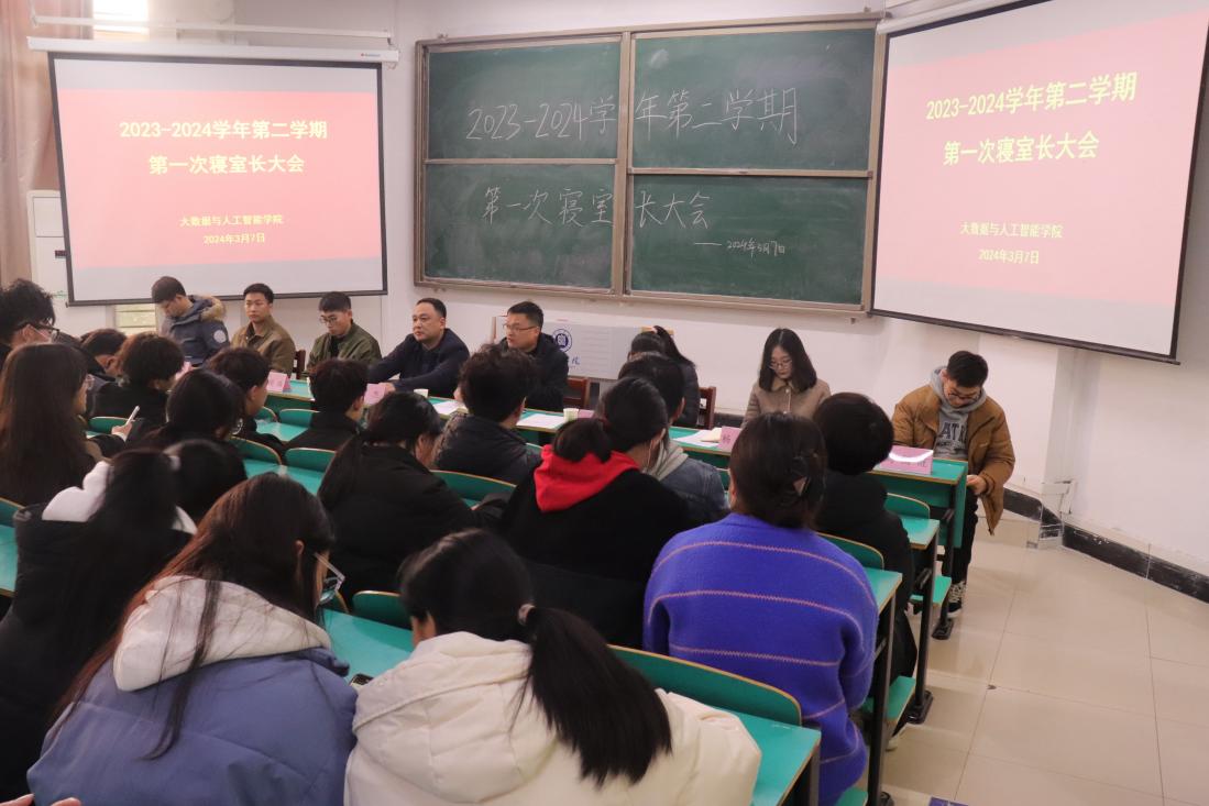 为进一步增强同学们的安全意识,强化寝室管理工作,形成文明和谐的宿舍环境,3月7日中午,大数据与人工智能学院在数计楼106教室召开新学期寝室长大会。学院党总支副书记毛凤翔出席会议,学工干事鄢杰、全体辅导员和全体寝室长参加会议。会议由鄢杰主持。