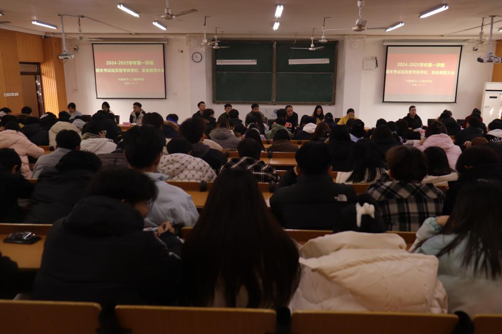 鄢杰就本次大会进行总结,他强调了考风考纪与安全工作的重要意义,要求同学们一是传承优良学风,端正学习态度。要在思想上充分认识期末考试和严肃考风考纪的重要性。二是主动积极向老师、同学请教,合理安排时间、认真复习备考。三是践行诚信应考,落实考风考纪规则。四是筑牢安全防线,增强防火、防盗意识,提高反诈能力,维护校园的和谐稳定。