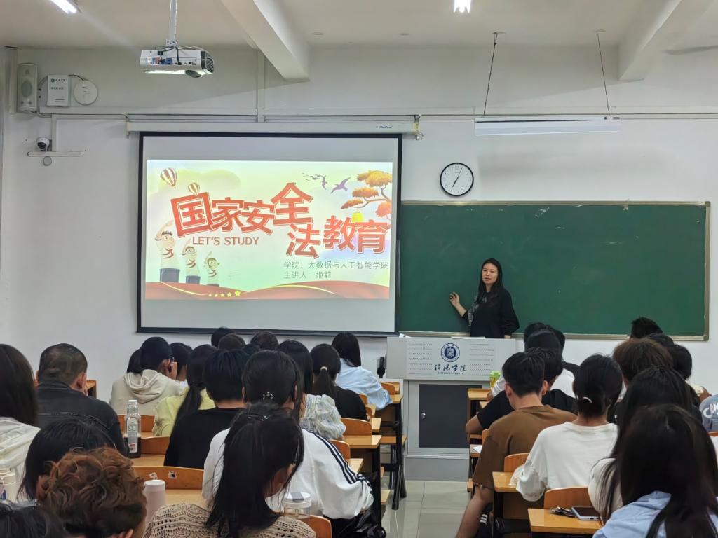 为提升大学生国家安全意识,普及国家安全相关知识。2025年4月16日晚19点,大数据与人工智能学院团总支在人文楼117教室开展了国家安全法教育主题团课。本次主题团课由姬莉老师主持,学院团组织部成员以及23级、24级入团积极分子参加了主题团课。