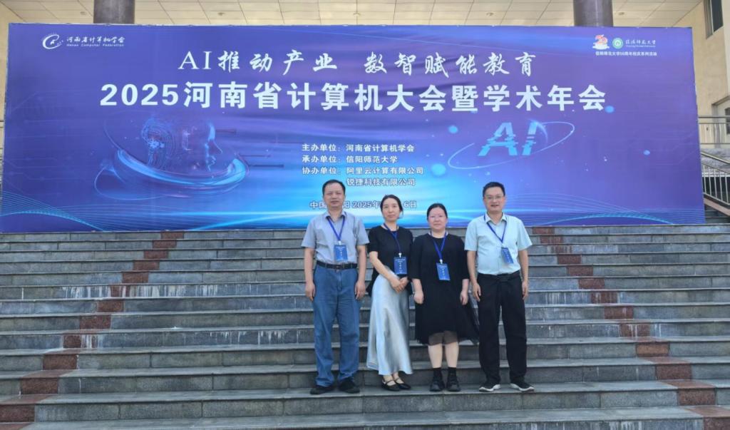 2025年7月4日至5日,由河南省计算机学会主办、信阳师范大学承办的“2025年河南省计算机大会暨学术年会”在信阳师范大学隆重举行。本次大会以“AI推动产业,数智赋能教育”为主题,旨在汇聚院士专家、行业领袖、学术精英与技术先锋,共同探讨人工智能与数字技术在产业升级与教育创新中的前沿应用与发展路径。信阳学院大数据与人工智能学院副院长毛凤翔、智慧教育大数据现代产业学院院长贾彦茹、人工智能教研室主任张冬松和软件工程教研室主任林金珠一行四人出席了此次盛会。
