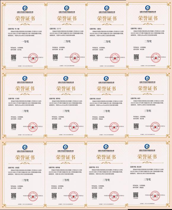 近日,2025年第八届计算机技能应用赛全国总决赛已经圆满落下帷幕。本次比赛设有Office类(Word、Excel、Powerpoint)和程序类(C语言、C++、Java和Python)。我校参赛团队在大数据与人工智能学院领导的大力支持下,经过指导老师的精心指导,学生积极备赛,在全国初赛中共斩获24个奖项,其中,一等奖4项,二等奖10项,三等奖9项;在全国总决赛中我校师生最终共斩获12个奖项,其中,一等奖1项,二等奖4项,三等奖7项。