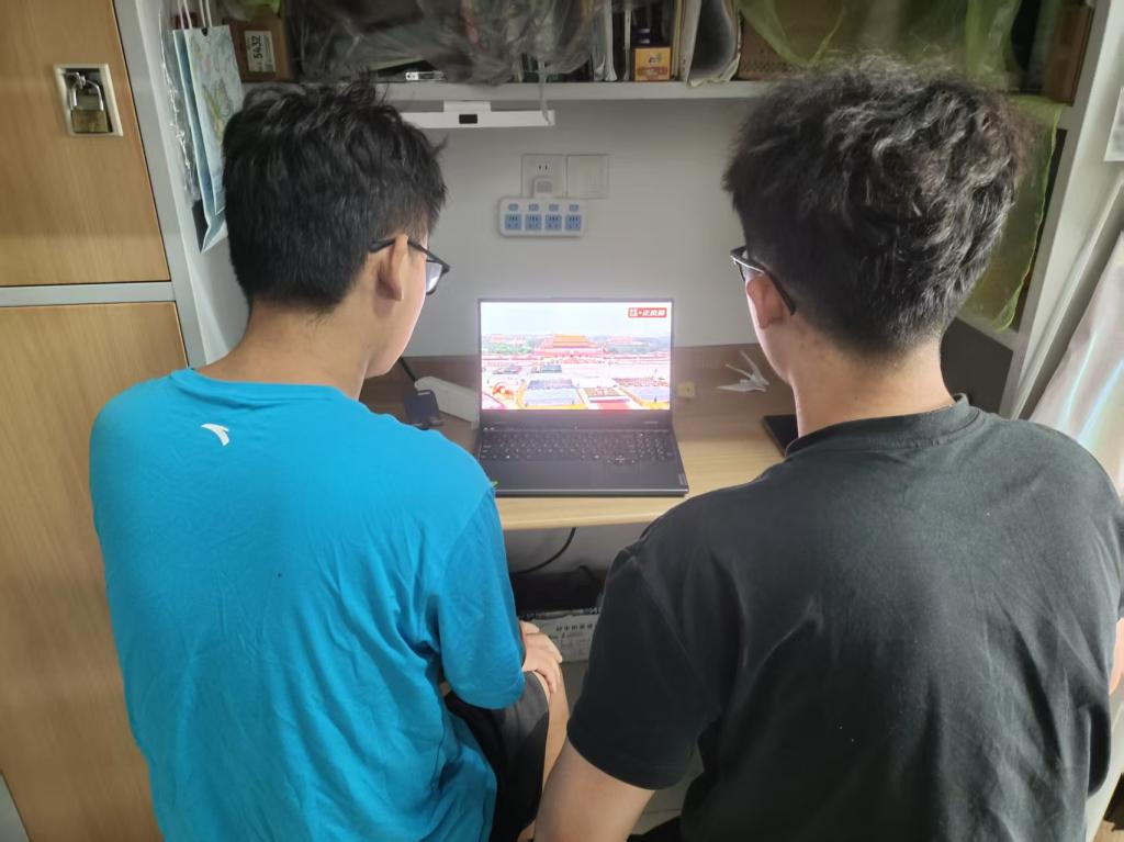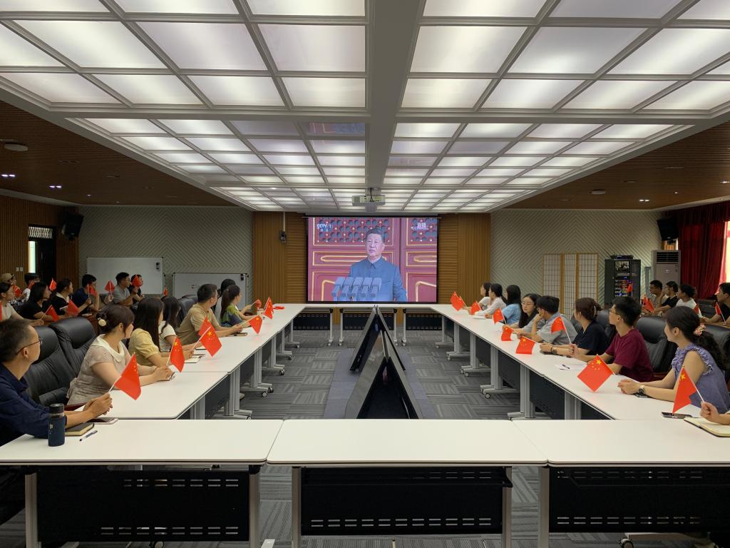 会议室现场气氛热烈而肃穆,大家手握国旗,怀着激动的心情注视着屏幕。屏幕上,天安门广场盛装以待,长安街上一列列受阅方队整齐排列,一辆辆装备战车整装待发。受阅部队英姿飒爽、步伐铿锵,新型武器装备依次亮相,充分展现了国家强大的国防力量和现代化建设的辉煌成就。师生们全神贯注,心情澎湃,为人民军队的威武雄壮深感震撼,为祖国的繁荣强盛倍感骄傲。