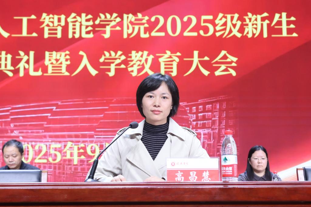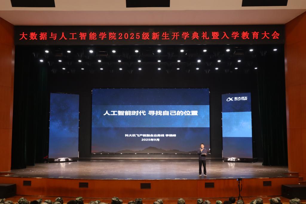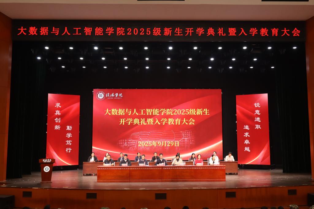 9月29日下午,大数据与人工智能学院在音乐厅举行了2025级新生开学典礼暨入学教育大会。大数据与人工智能学院院长邬长安、党总支书记高昌慧、教学副院长毛凤翔、智慧教育大数据现代产业学院院长贾彦茹、教学干事徐良、行政干事陈慧、学工干事鄢杰、各教研室主任及教师代表、科大讯飞工程师代表、新生辅导员和2025级全体本专科新生参加了会议。会议由高昌慧主持。