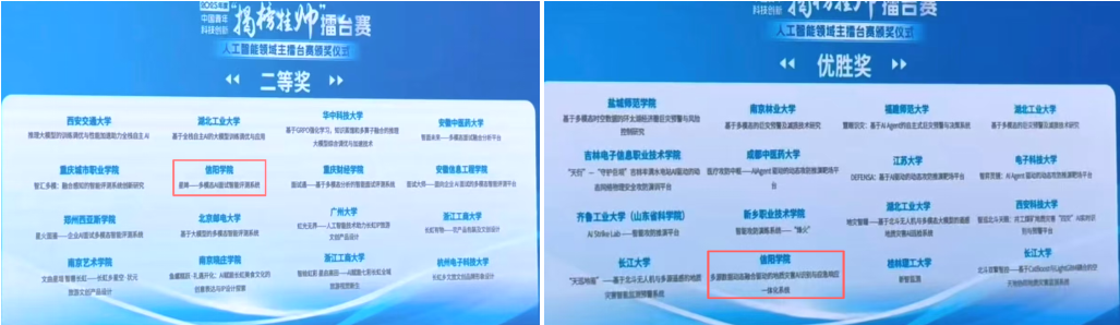 近日,由共青团中央等主办的“挑战杯”揭榜挂帅专项赛暨2025年度中国青年科技创新“揭榜挂帅”擂台赛人工智能领域主擂台赛在上海成功举行。来自全国506所高校的2200余支团队报名人工智能主擂台赛,710支入围终审的参赛团队激烈角逐。大数据与人工智能学院积极组织,选派两支团队参赛,表现优异,获得全国二等奖1项,优胜奖1项。
