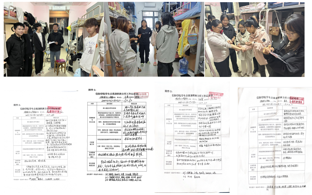 宿舍走访温情暖心,织密精准服务网络。兼职班主任坚持每月定期深入学生公寓,将育人触角延伸至学生生活“最后一公里”。走访交流中,针对部分学生存在的专业方向迷茫问题,班主任们结合大数据、人工智能行业发展趋势,现场为学生拆解专业细分领域、梳理职业发展路径;对收集的学生思想动态,形成“整体积极向上但部分存在学业焦虑”的精准研判,同步提出“强化安全巡查+心理疏导前置”的针对性建议。一本本走访记录,字里行间皆藏着对学生成长的细致关怀。
