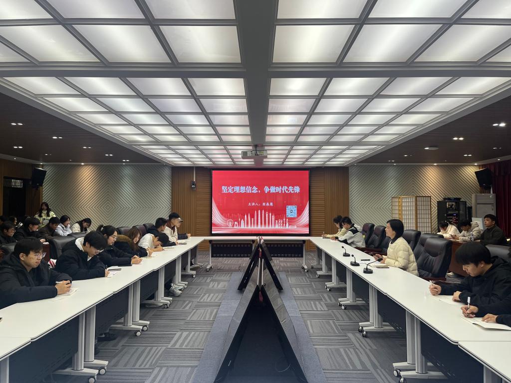 开班仪式结束后,高昌慧作了题为《坚定理想信念,争做时代先锋》的主题党课。高书记从“什么是理想信念”切入,指出理想信念是贯穿人生道路的精神支柱和前行“指南针”,既包含个人层面的职业理想与价值追求,也涵盖对社会公平正义、国家繁荣富强和民族复兴的深切向往。大家要以实现中华民族伟大复兴为己任,增强志气、骨气、底气,不负党和人民的殷切期望。在如何践行理想信念方面,她指出:一要在“学理论”中筑牢信念根基,做到知其然更知其所以然;二要在“强本领”中践行理想追求,坚持知行合一,既深耕专业学习,又积极参与“三下乡”等社会实践;三要在“守初心”中锤炼品德修为,严于律己、砥砺品格,自觉抵制不良诱惑;四要在“敢担当”中展现先锋本色,在关键时刻挺身而出,在日常服务中主动作为,真正做到“平常时候看得出来、关键时刻站得出来、危难关头豁得出来”。最后,她寄语同学们,以青春之我、奋斗之我,为民族复兴架桥铺路,为祖国建设添砖加瓦,在实现中国梦的伟大征程中书写无愧于时代的青春篇章。