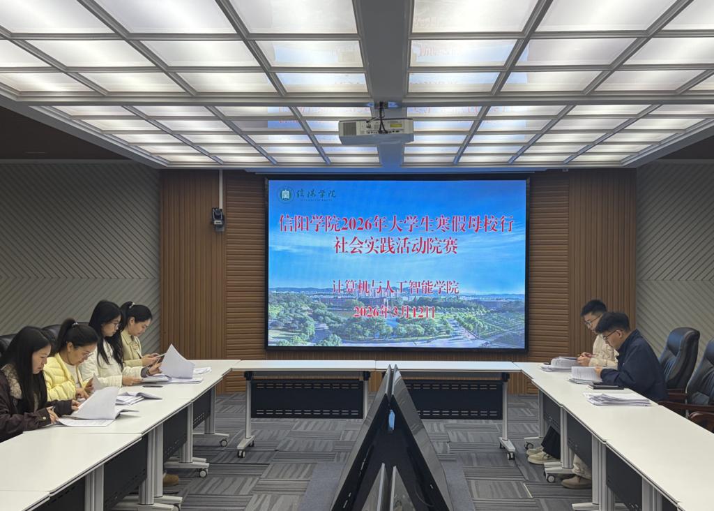 为深入贯彻落实学校《关于开展信阳学院2026年大学生寒假母校行社会实践活动的通知》精神,搭建我校学子与高中母校的沟通桥梁,提升学生的综合素质与实践能力,3月12日,计算机与人工智能学院在人文楼208会议室举行了2026年寒假“母校行”社会实践活动院级初赛。