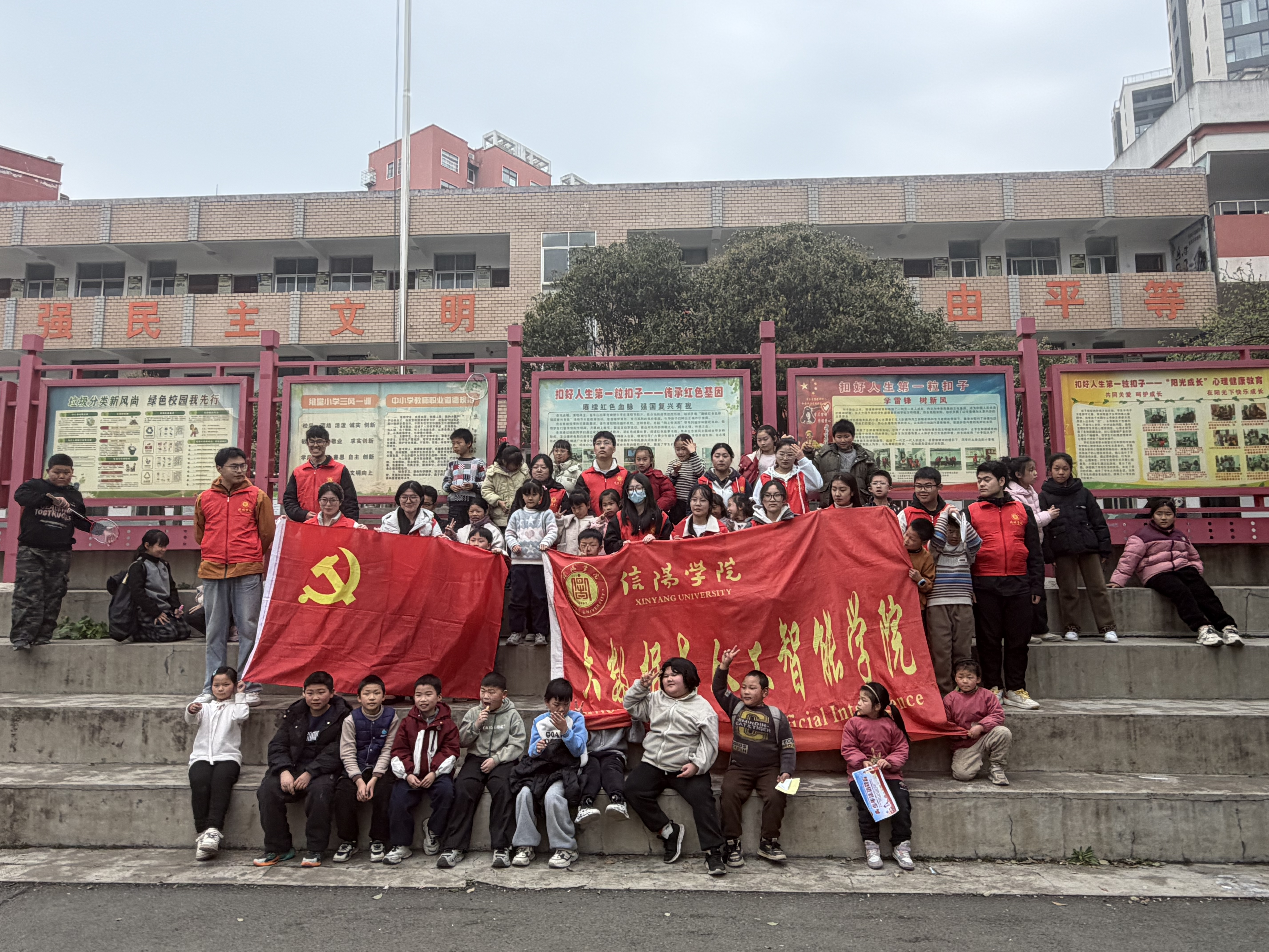 为深入学习贯彻习近平总书记关于弘扬雷锋精神的重要指示精神,推进党性教育与志愿服务深度融合,在全国学雷锋志愿服务月期间,计算机与人工智能学院坚持党建引领,激发团建活力,组织入党积极分子及学院志愿者服务队,于2026年3月19日下午走进飨堂小学,联合开展主题志愿服务活动。活动以党团联动为载体,将红色教育、心理健康与趣味陪伴有机融合,生动展现了新时代青年在党旗引领下服务社会、奉献青春的使命担当。