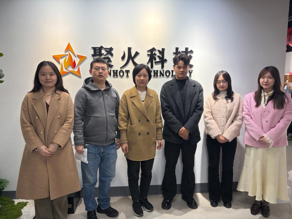 翁守志对学院一行的到访表示热烈欢迎,并详细介绍了公司的发展历程、业务板块、技术优势及人才需求等情况。他表示,聚火网络科技深耕电商领域,持续关注高校人才的培养与引进,期待与学院在人才输送、项目实践等方面开展更深层次的合作,共同助力区域数字经济发展。