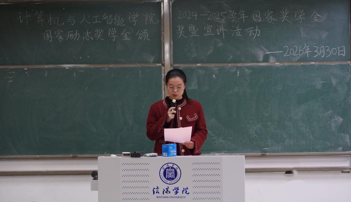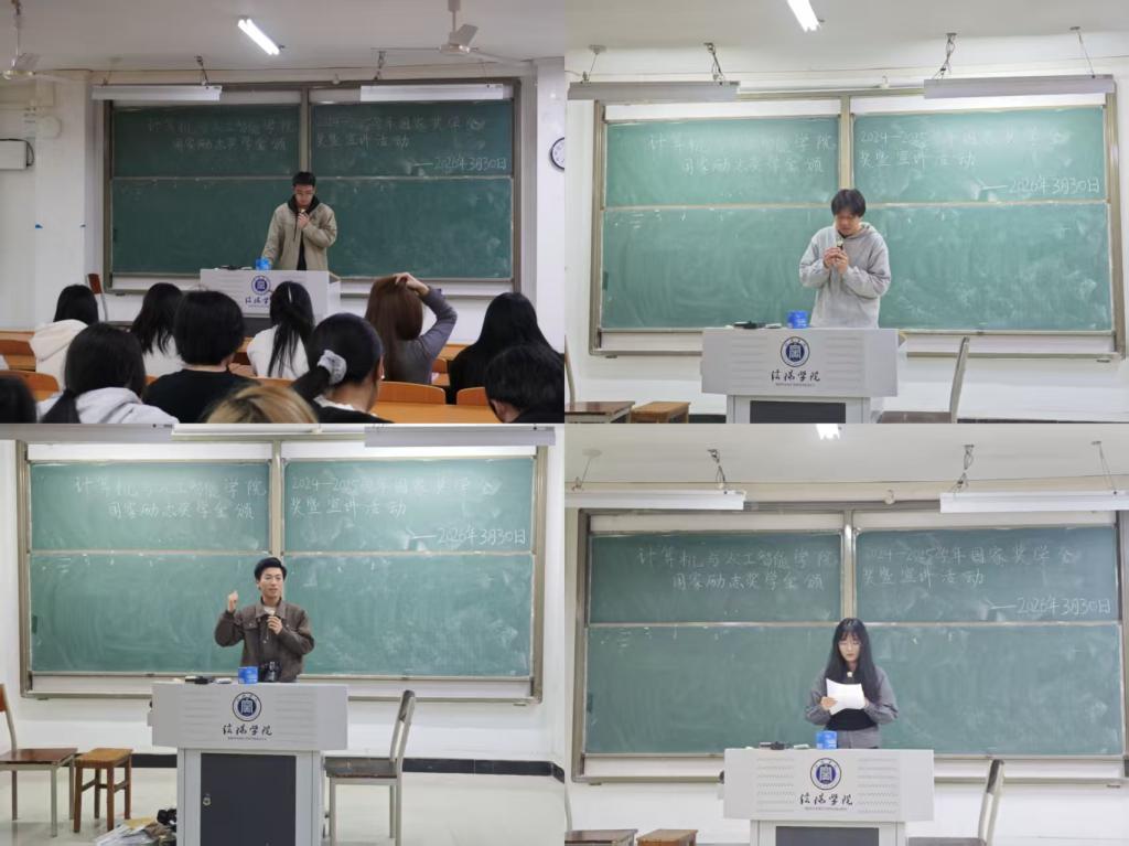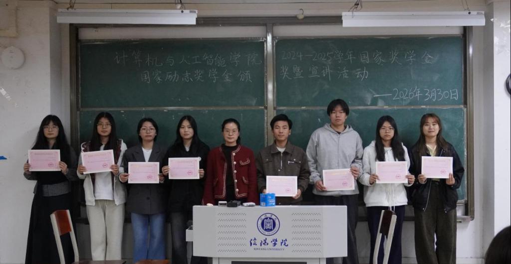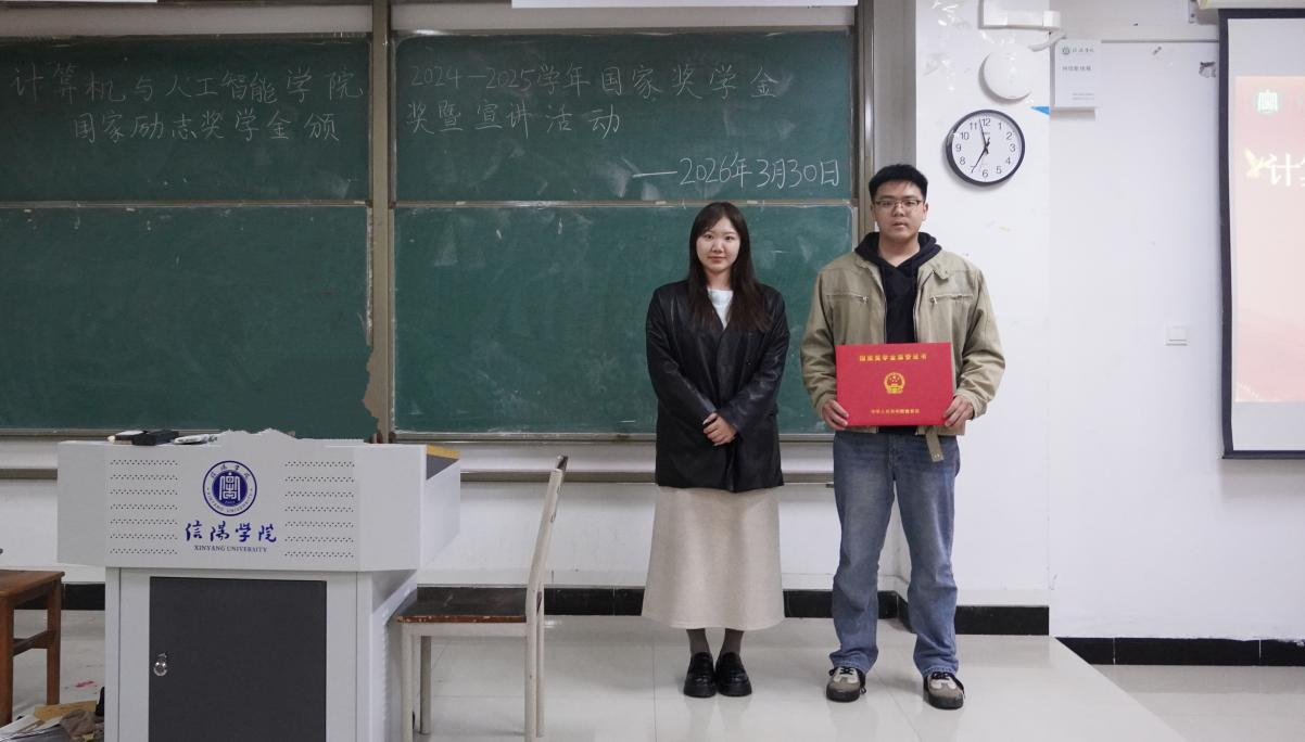 为表彰先进、树立榜样,充分发挥优秀学生的示范引领作用,激励全院学子勤学笃行、奋勇争先,3月30日晚,计算机与人工智能学院在人文楼408教室举办2025年度国家奖学金、国家励志奖学金颁奖暨宣讲会。学院部分学生代表参与本次活动,共同见证榜样荣光,汲取奋进力量。