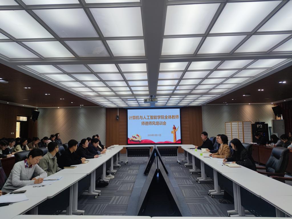 3月31日下午,计算机与人工智能学院在人文楼208会议室召开师德师风培训会,深入学习贯彻习近平总书记关于师德师风的重要论述,进一步强化教师队伍思想政治素质和职业道德建设。学院班子成员、全体教职工参加了会议。党总支书记高昌慧主持会议。