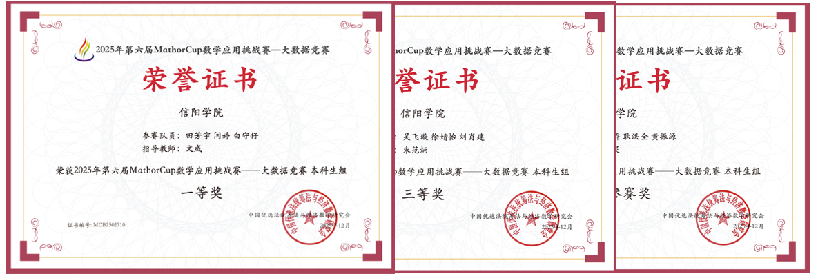 近日,2025年第六届MathorCup数学应用挑战赛成绩发布,计算机与人工智能学院组建的8支队伍获得了丰硕成果。其中,国赛一等奖1项,分赛区三等奖1项,分赛区成功参赛奖6项。