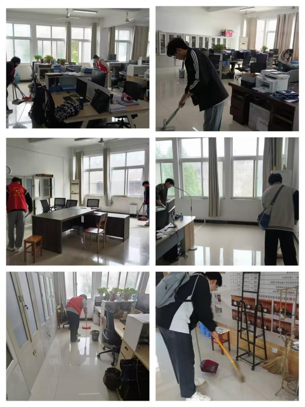 活动现场,全体积极分子统一行动、分成两组,有序前往人文楼教学办公区域开展环境卫生清洁。大家发扬奉献精神,分工明确、配合默契,认真清扫地面、擦拭门窗桌椅、整理公共区域、清理卫生死角,以细致务实的劳动改善公共环境。经过共同努力,各区域环境整洁有序、面貌焕然一新。