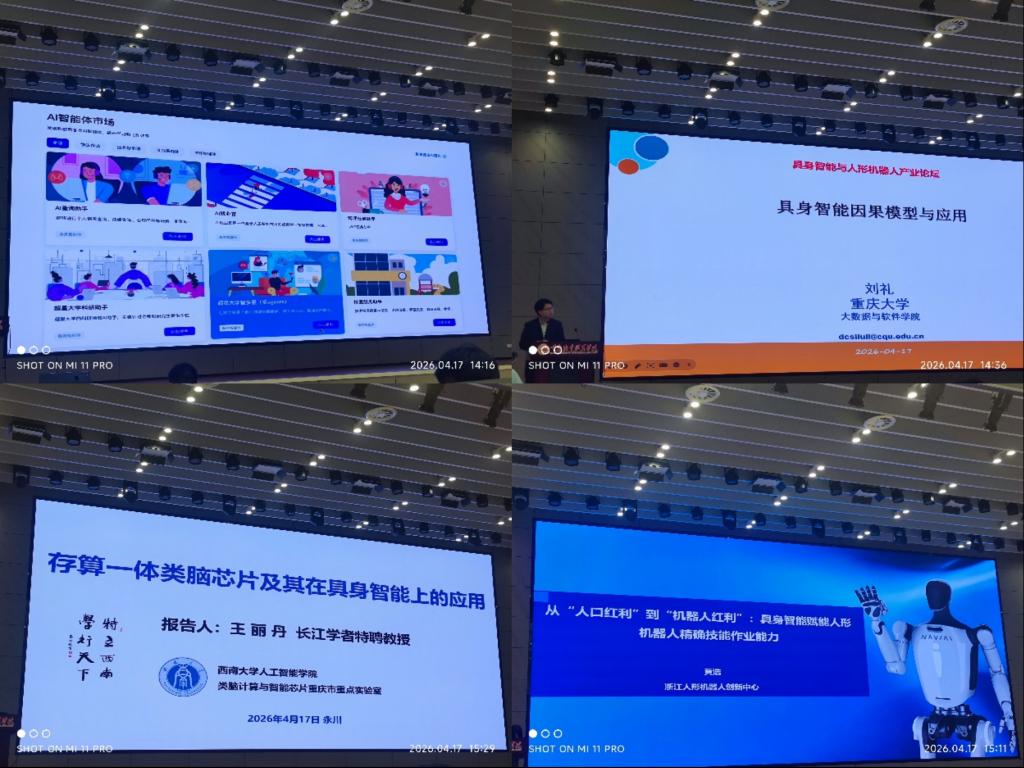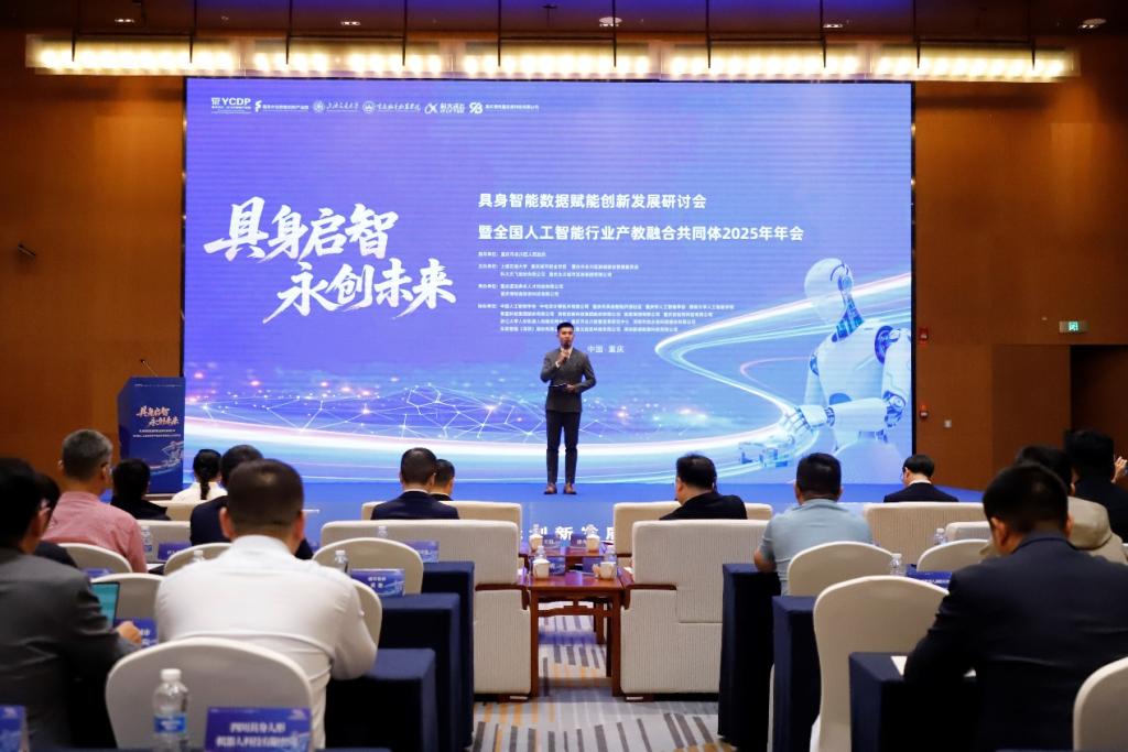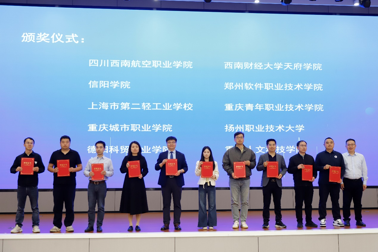 为深入贯彻落实国家关于“人工智能+”行动的决策部署,加快培育具身智能领域新质生产力,4月17日,具身智能数据赋能创新发展研讨会暨全国人工智能行业产教融合共同体2025年年会在重庆市永川区隆重举行。我院受邀参加本次会议,朱范炳和文成两位专任教师参会,聆听来自高校和企业的专家学者主题分享,并作为产教融合典型案例获奖代表上台领奖。