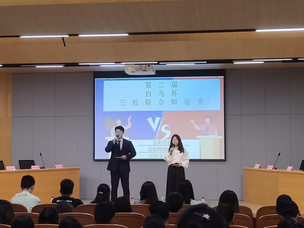 为了丰富校园文化,提升口语与表达能力,陶冶学生情操,2024年5月25日下午,大数据与人工智能学院演讲与口才协会在信阳学院图书馆101室举办了第二届“白马杯”三校联合辩论赛。参加本次联合辩论赛的是来自信阳学院、信阳师范大学和信阳农林学院的辩论队。大数据与人工智能学院演讲与口才协会指导老师晏祥、信阳农林学院大学生辩论社指导老师方志宏、信阳师范大学大学生辩论社2020届社长王宇、还有来自三所院校的辩轮社团的优秀学生干部担任评委。